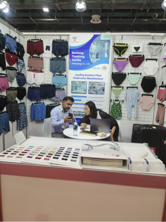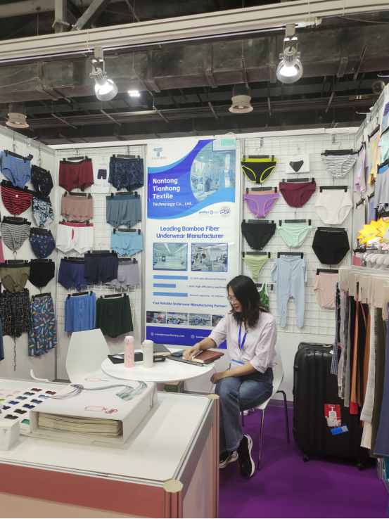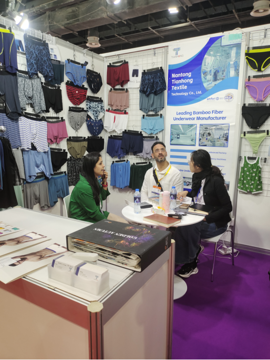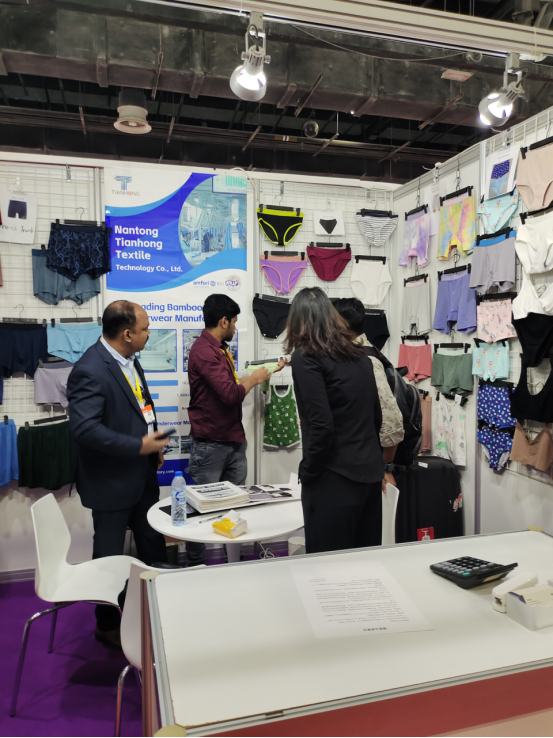 Tianhong Ha Avuto un Impatto Noteole in QueSta MoStra, Ottenendo un Enorme SucceSSo. Nell'arco di 3 giorni, abbiamo avuto il piacere di ospitare quasi 600 visitatori provenienti da più di dieci paesi, che rappresentano vari settori del settore dell'abbigliauominito, tra cui start-up, proprietari di marchi, agenti di approvvigionauominito e altri. ABBIAMO MOSTRATO Orgogliosame la Nostra Collezione di Biancheria Intima da Uomo, da Donna e da Bambini, tutti con tessuti viscosi di Bambù, tra cui ma non limiteti a: